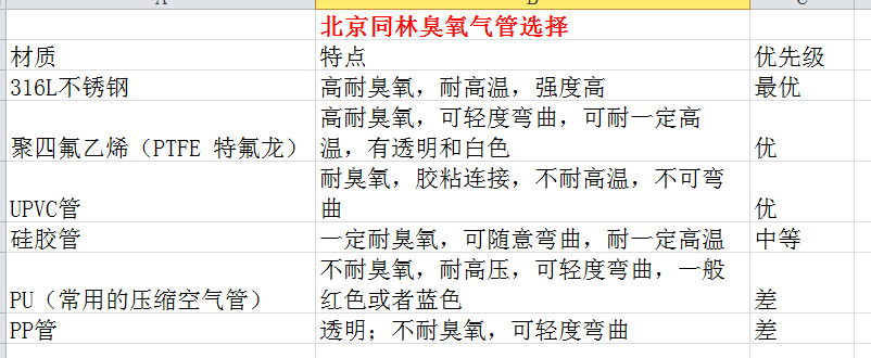 下面是同林列出的耐臭氧管的選擇