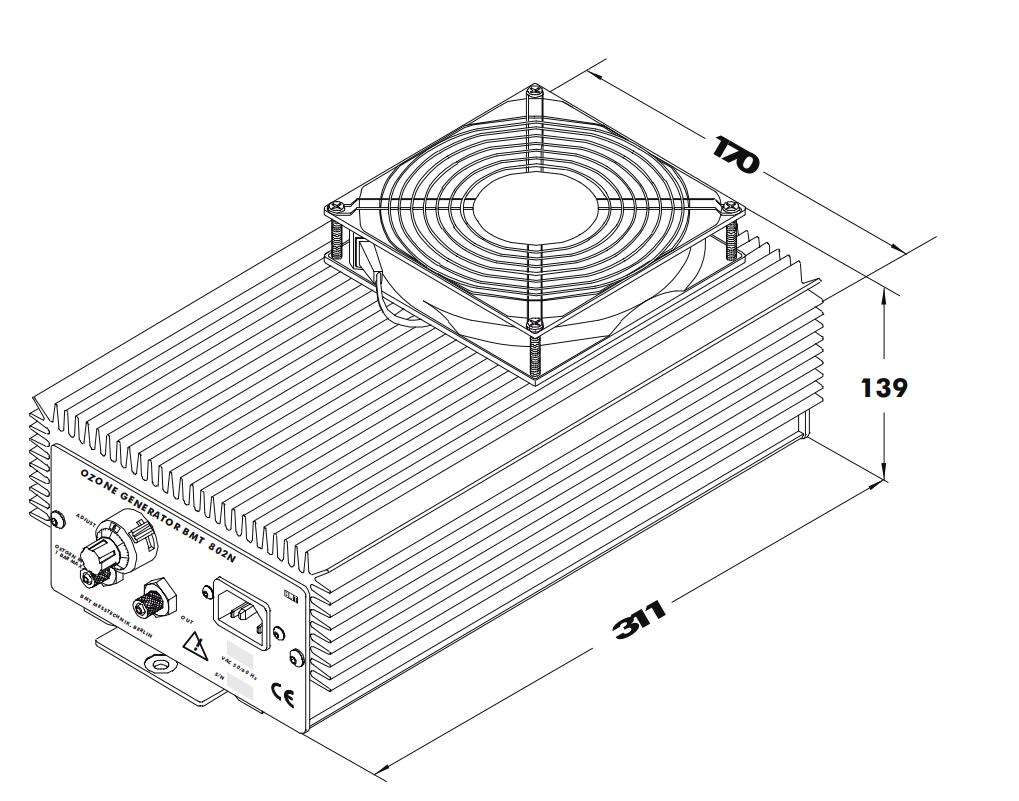 臭氧產(chǎn)生量4 g/h(100g/Nm3/20°C)9 g/h(BMT 803N HP)