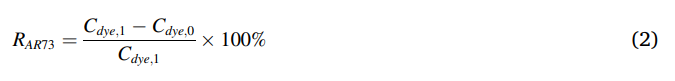 式中,RAR73為AR73降解效率,Cdye,1和Cdye,0分別為降解前后水樣中AR73的濃度,mg⋅L−1。
