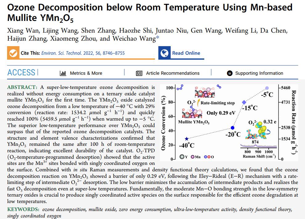 關(guān)鍵詞:臭氧分解、氧化莫來石、零能耗、超低溫活性、密度泛函理論、單配位氧