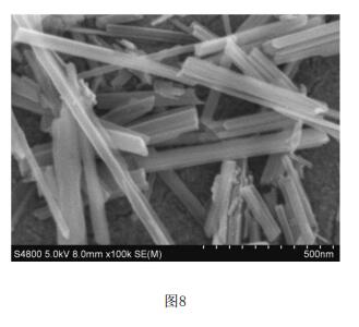 [0040] 圖8是對(duì)比例3中β晶型的二氧化錳的掃描電鏡圖。