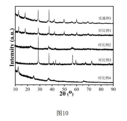 [0042] 圖10是實(shí)施例1和對(duì)比例1~4中二氧化錳的XRD圖。